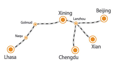 El tren Beijing-Lhasa cubre 3757 km y cruza 8 provincias de Beijing a través de Shijiazhuang, Taiyuan, Zhongwei, Lanzhou, Xining, Delingha, Golmud, Naqu y Lhassa. Tarda unas 40 horas y 30 minutos y el tren circula todos los días.